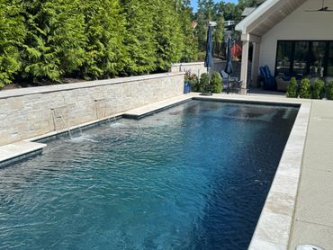 Our gunite swimming pools are fully customizable, offering complete design freedom to match your vision and your yard. These pools are engineered for long term strength and beauty, built with 6” thick concrete and reinforced with rebar every 6 inches. The interior is finished with smooth, durable plaster and accented with elegant waterline tile for a clean, polished look.